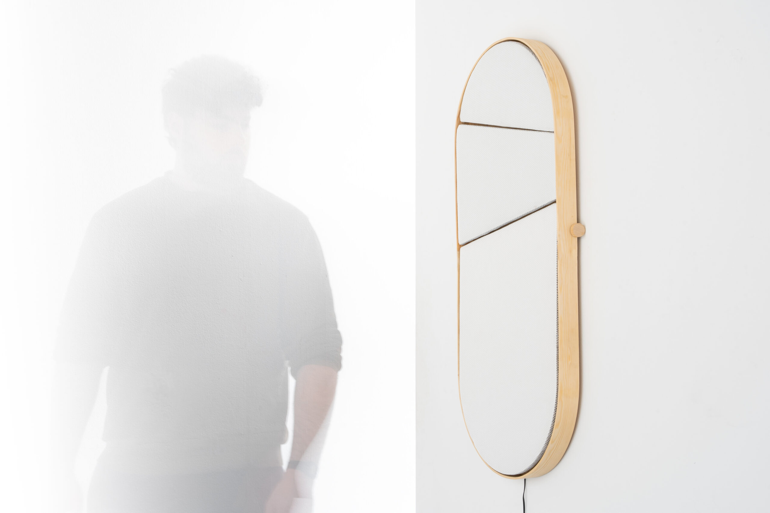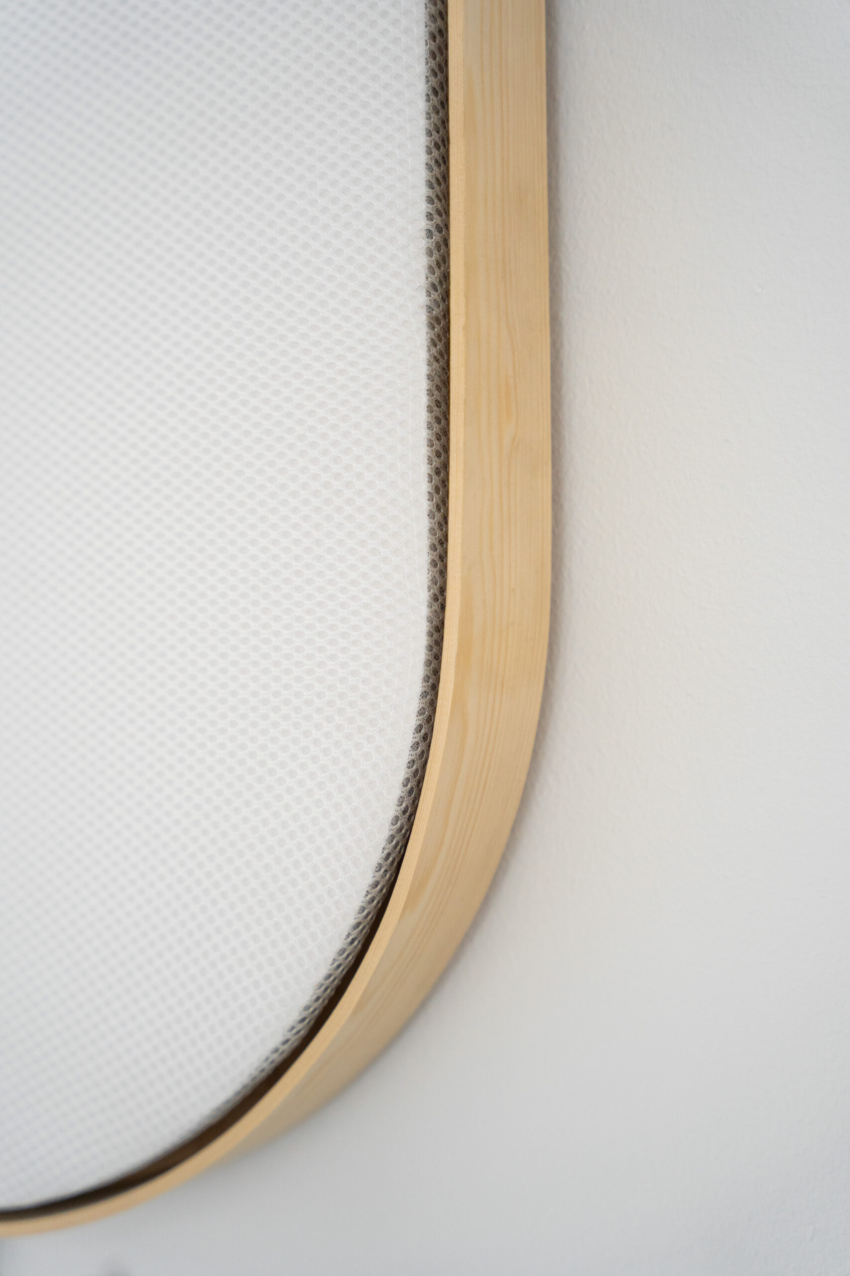 „ClearyFi“ is a design approach to a low-profile wall-mounted loudspeaker that uses very few materials and components to create an accessible and repairable system. The frame is made of local pine wood, bent by hand and the three surfaces are made of paper honeycomb panels covered with acoustic fabric. Each panel has an exciter on the back which causes the panel to vibrate and create the clear sound we then hear.